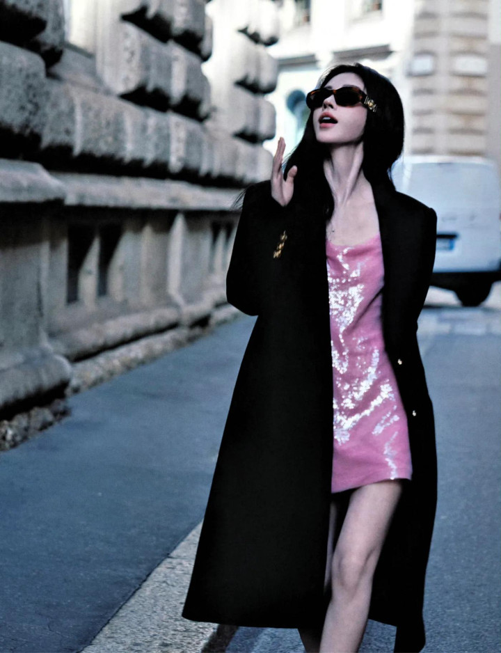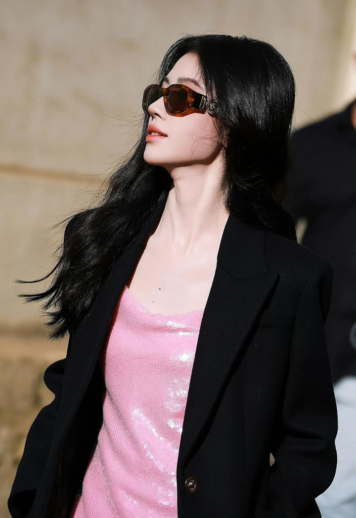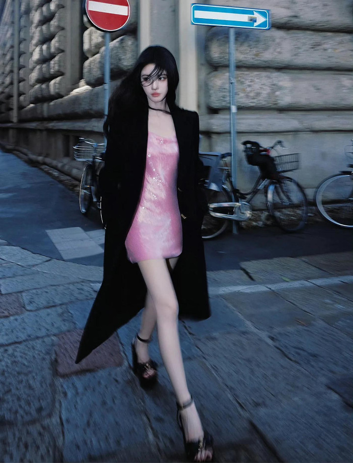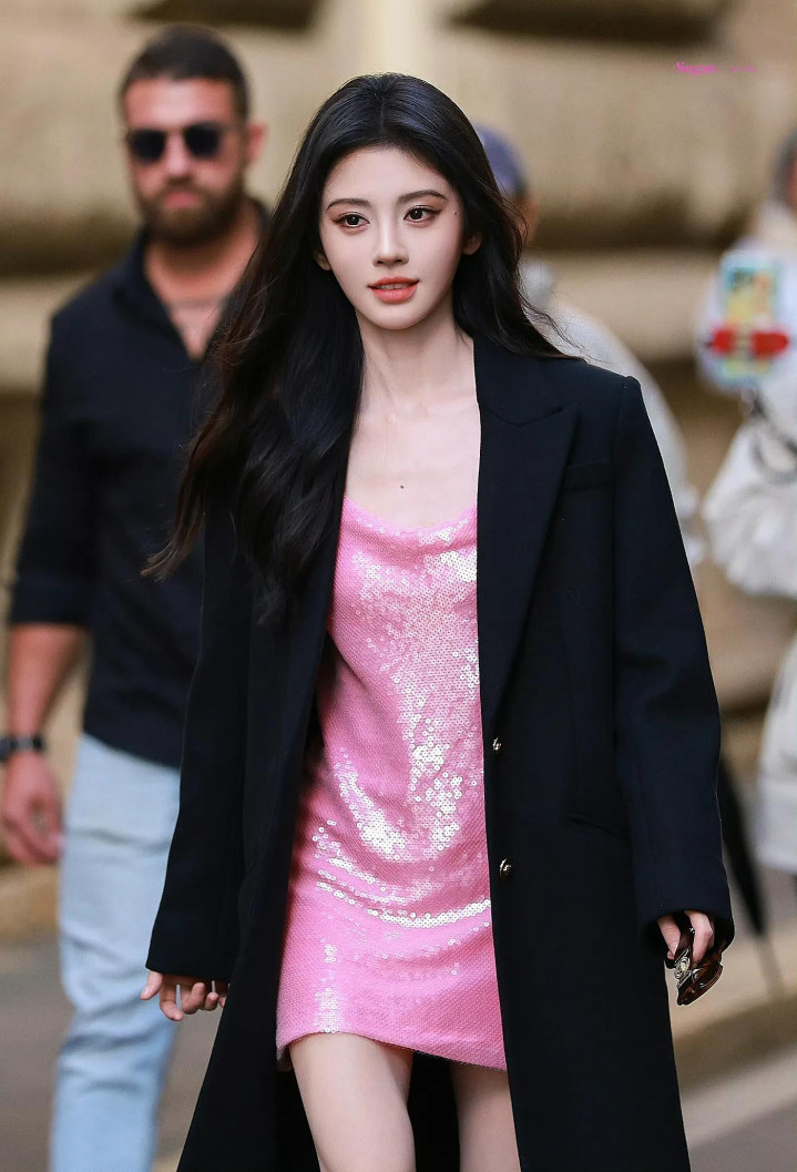 在米兰时装周期间,鞠婧祎以粉色亮片吊带裙叠搭黑色长款皮质西装大衣,展现出柔媚与潇洒的碰撞,形成了“外冷内甜”的反差风格。无刘海大波浪发型搭配金属配饰,更强化了冷艳气场,她的生图状态被赞为“如精修大片”。让我们一起欣赏一下吧!